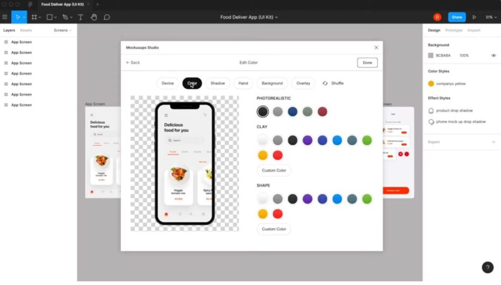 From here, you’ll choose the device, tweak colors and backgrounds, add hands or lighting, and then reuse that scene for your Figma mockups.
