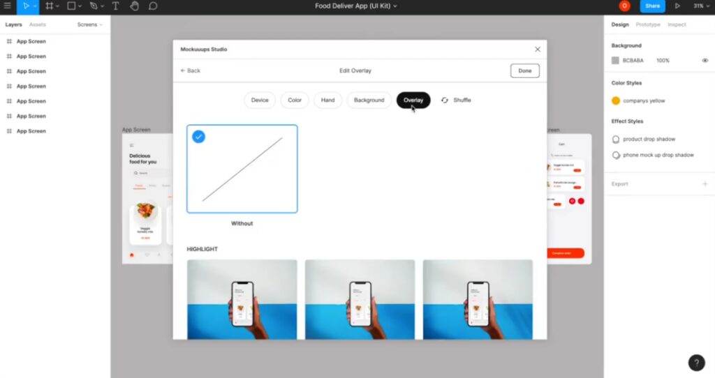 Use overlays lightly. A gentle overlay can make an iPhone mockup or laptop mockup look premium; too strong and it might distract from the UI.